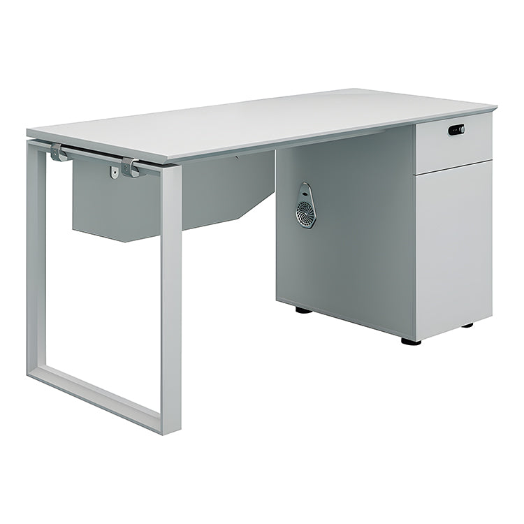 お勧めいたしましたこちらのデスクは、重厚感のあるデザインと洗練されたホワイト色が特徴です。ツートンカラーの天板でモダンな印象を添え、オフィスに新たな活気をもたらします。さらに、天板には配線孔が設けられており、PCやその他のデバイスのケーブル管理を容易にし、卓上を常に整理整頓された状態に維持できます。