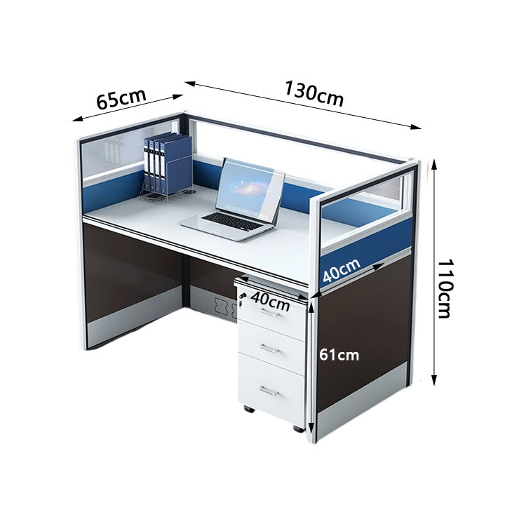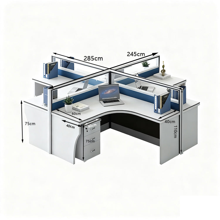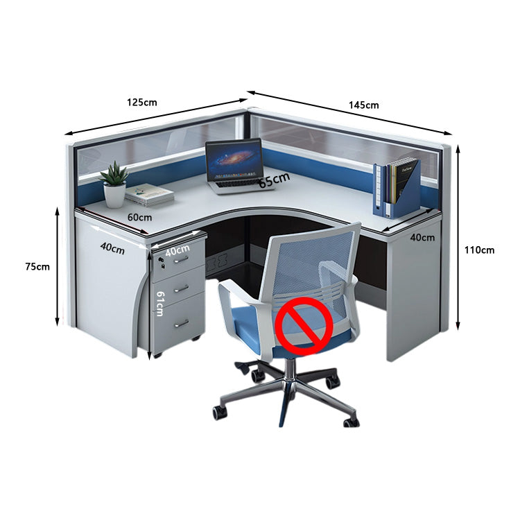 選ばれたデスクは、温かみのある木目調の天板が特徴で、L字型のデザインが空間を効率よく活用すると同時に、スタイリッシュな印象をも漂わせています。サイドキャビネットは必書類やオフィス用品を整理整頓するのに役立ち、幕板がプライバシーを保ちつつ、オフィスをより一層洗練させます。
