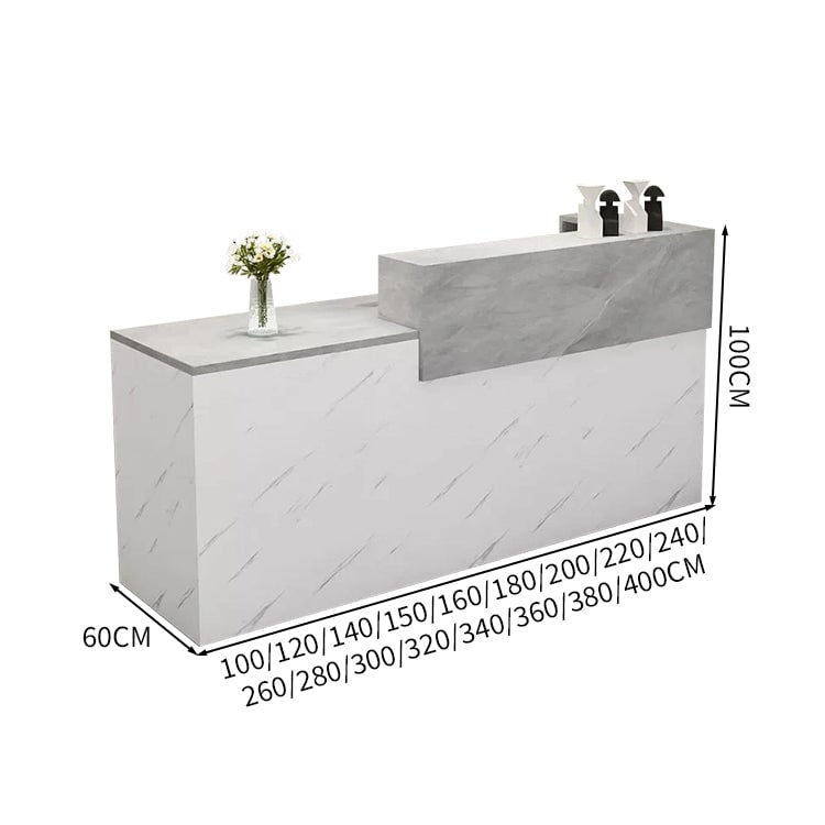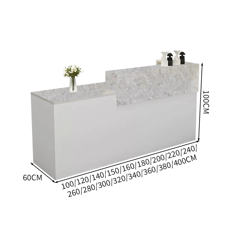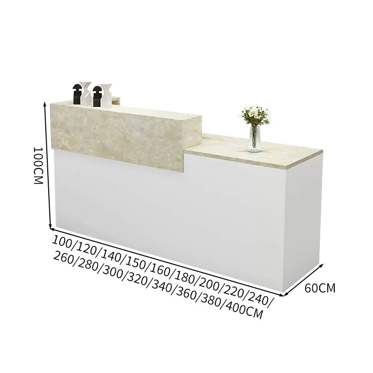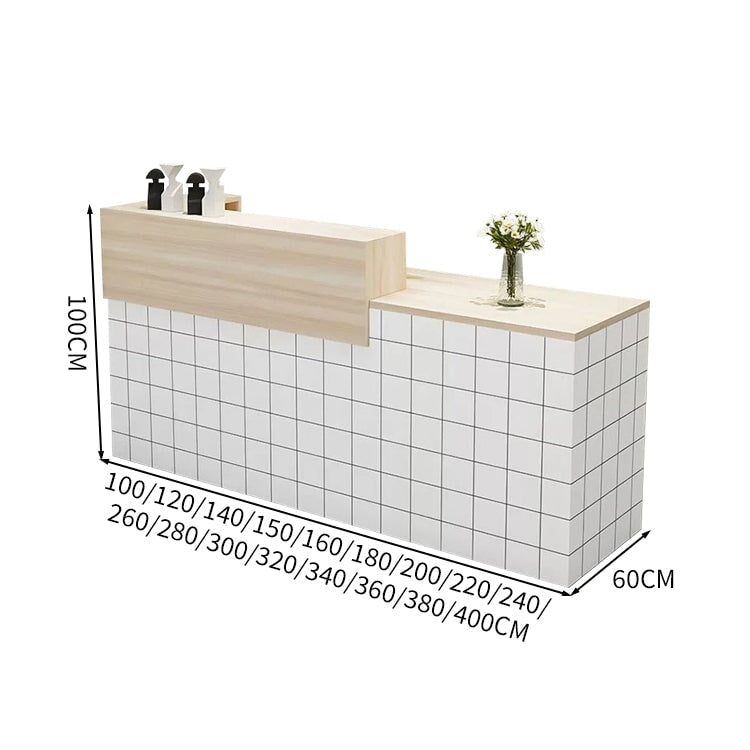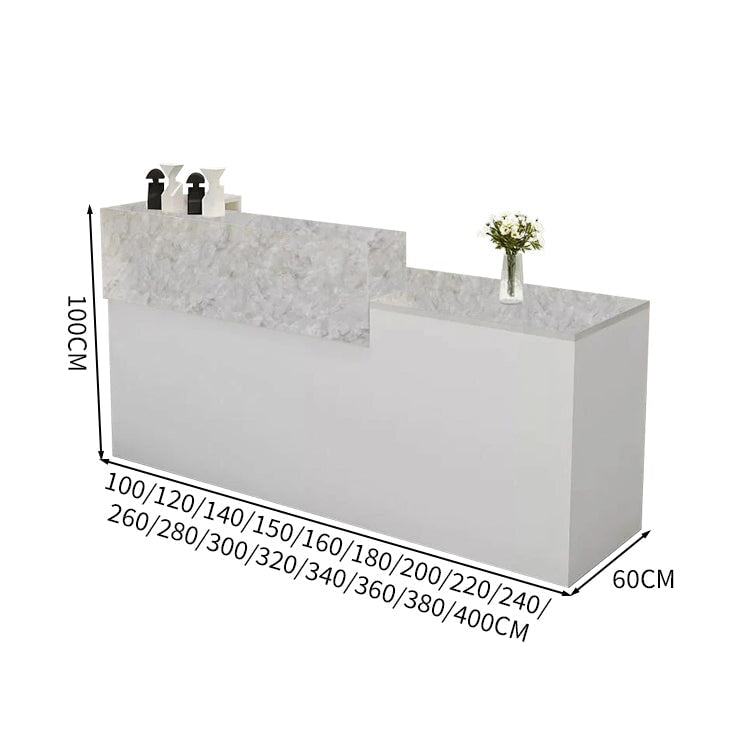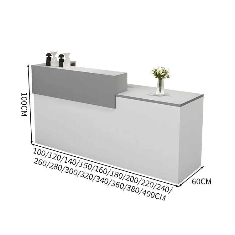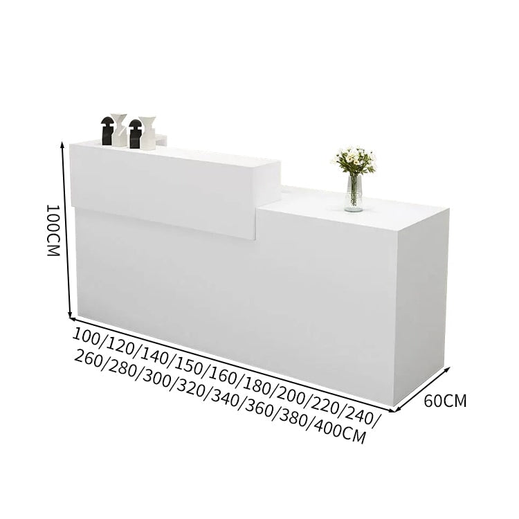 受付カウンター レジカウンター 受付台 カウンター 収納棚 引き出し付き キーボードトレイ付き 袖机 配線穴付き ホワイト カスタマイズ可能 JDT-K-111