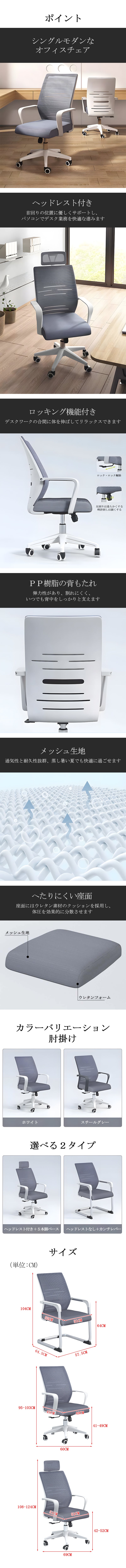 ワークチェア オフィスチェア パソコンチェア ミーティングチェア 人間工学 調節機能 ヘッドレスト ウレタンフォーム 昇降機能 メッシュ シングル グレー BGY - S015 - Kagushop