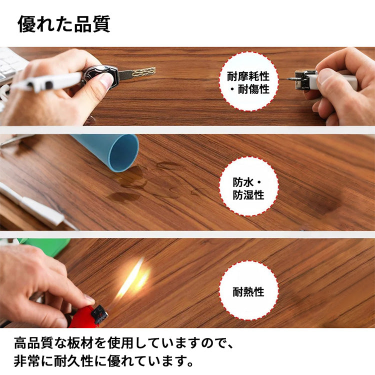 このカウンターは、上質なメラミン化粧板を使用しており、長期間の使用にも耐えられます。さらに、汚れや傷に強いかつ、お手入れが簡単な焼付塗装を採用しています。耐久性に優れているため、長期間使い続けても劣化しにくく、美しい見心地を保てます。充実した収納スペースは書類や用品をすっきり整理整頓できます。
