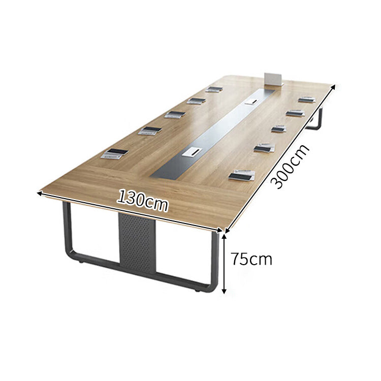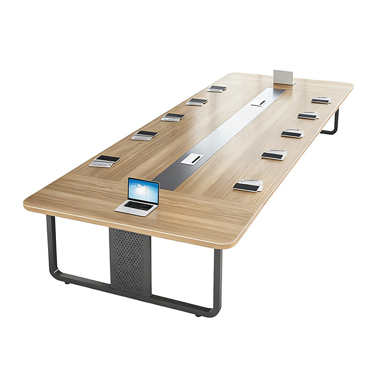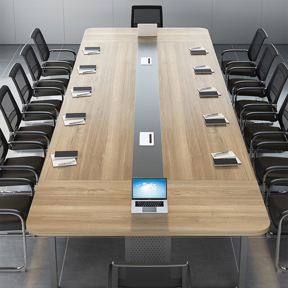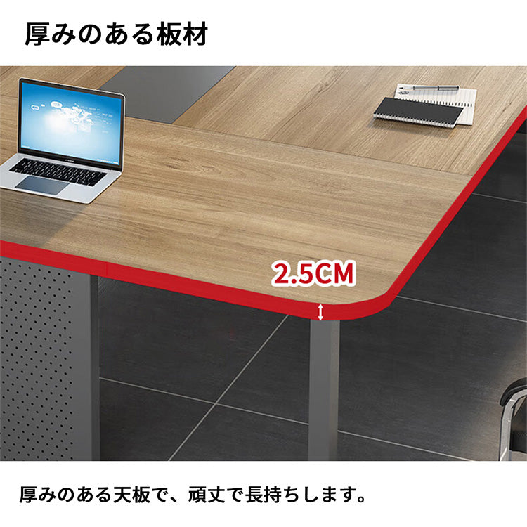 木目調 オフィスデスク ミーティングテーブル 大型会議テーブル R加工 焼付塗装 スチール脚 配線ボックス シンプル カスタマイズ可能 SL-HYZ-014