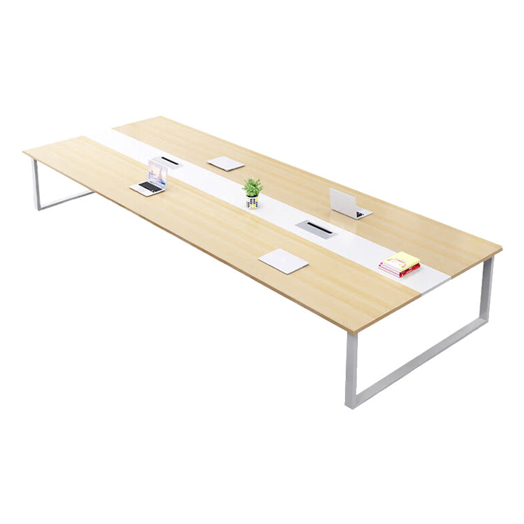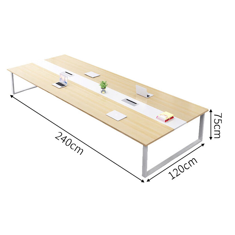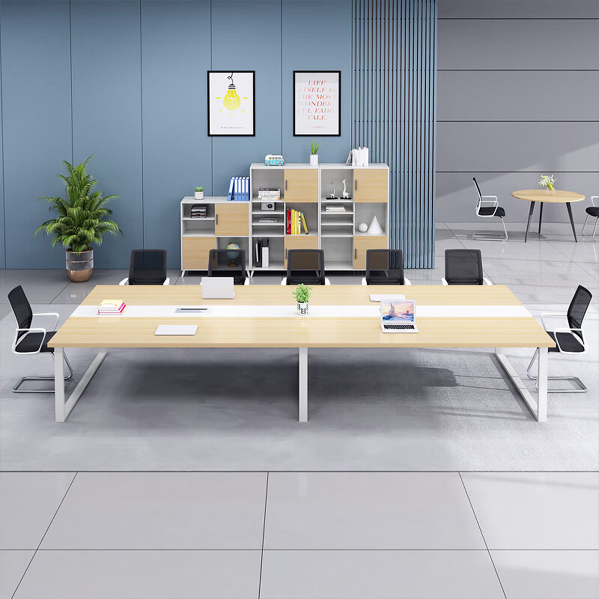 木製会議テーブル ミーティングテーブル 会議室用テーブル エコ素材 焼付塗装 スチール脚 配線ボックス 木目調 カスタマイズ可能 SL-HYZ-018