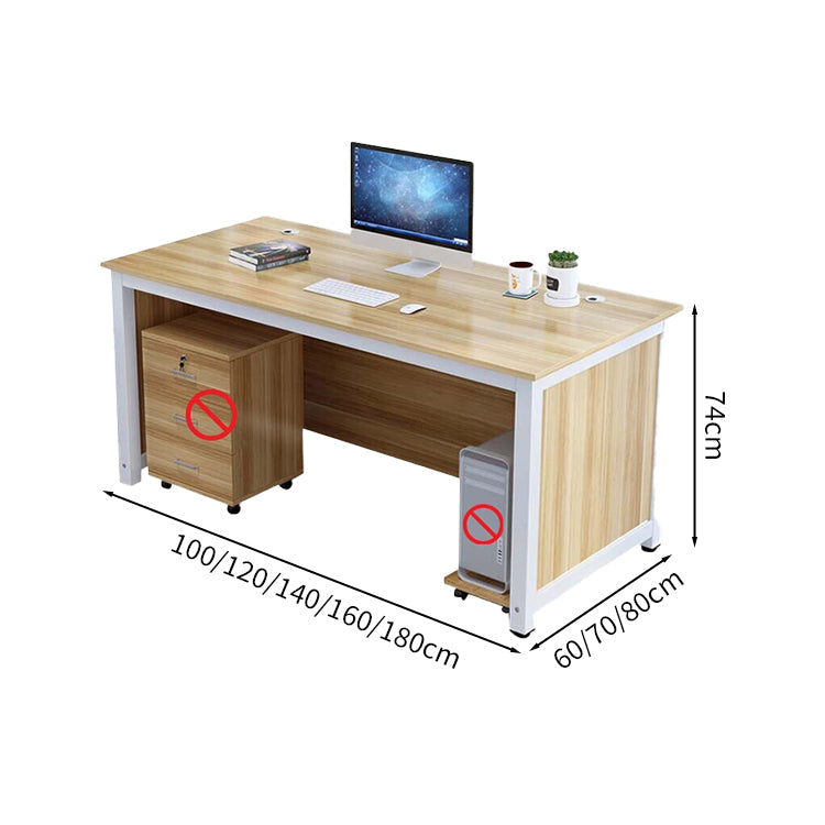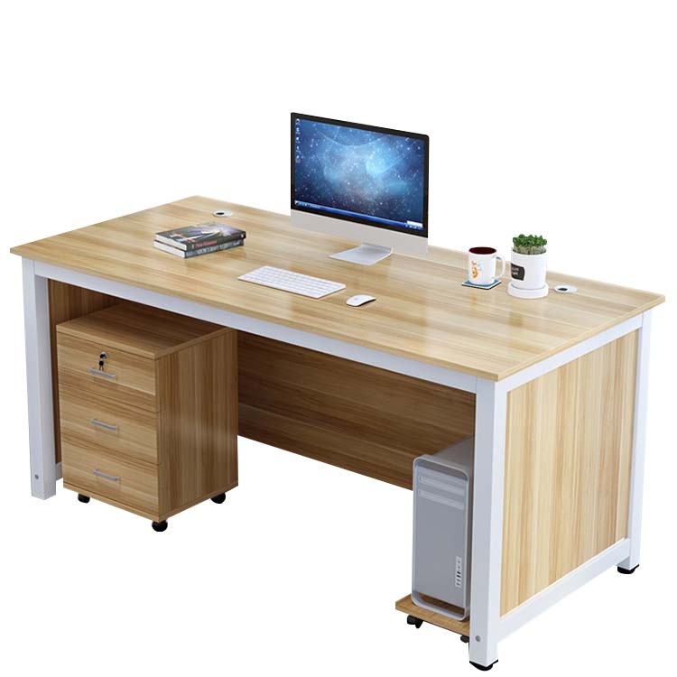 オフィスデスク 事務デスク オフィス用 木目調 PCカート付き 引出し付き 錠付き 配線孔付き ホワイト カスタマイズ可能