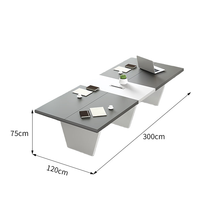 会議用テーブル テーブル 会議用 シンプル 機能的 安定感 台形脚 配線ボックス グレー ホワイト MBS-HYZ-3002