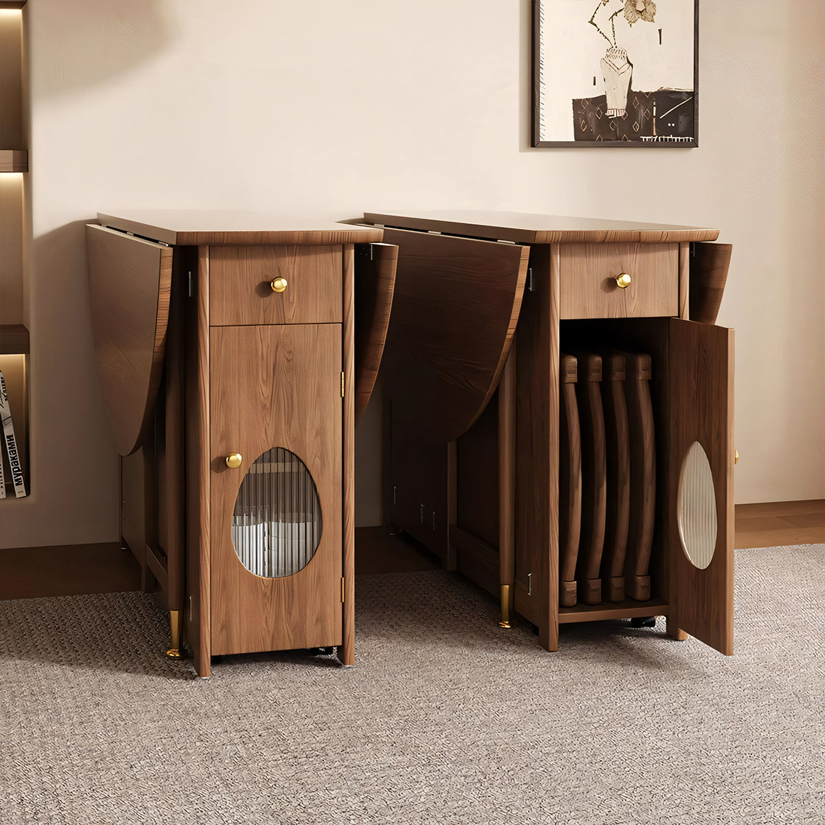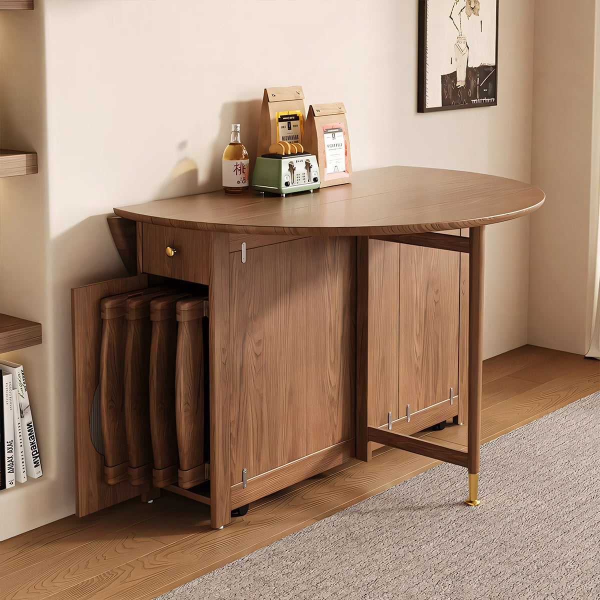 天然木 ダイニングテーブル 折りたたみ可能 ブラウン 木目調 収納スペース付き テーブルセット カスタマイズ可能 CZ-S030