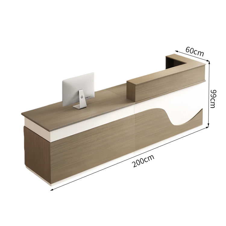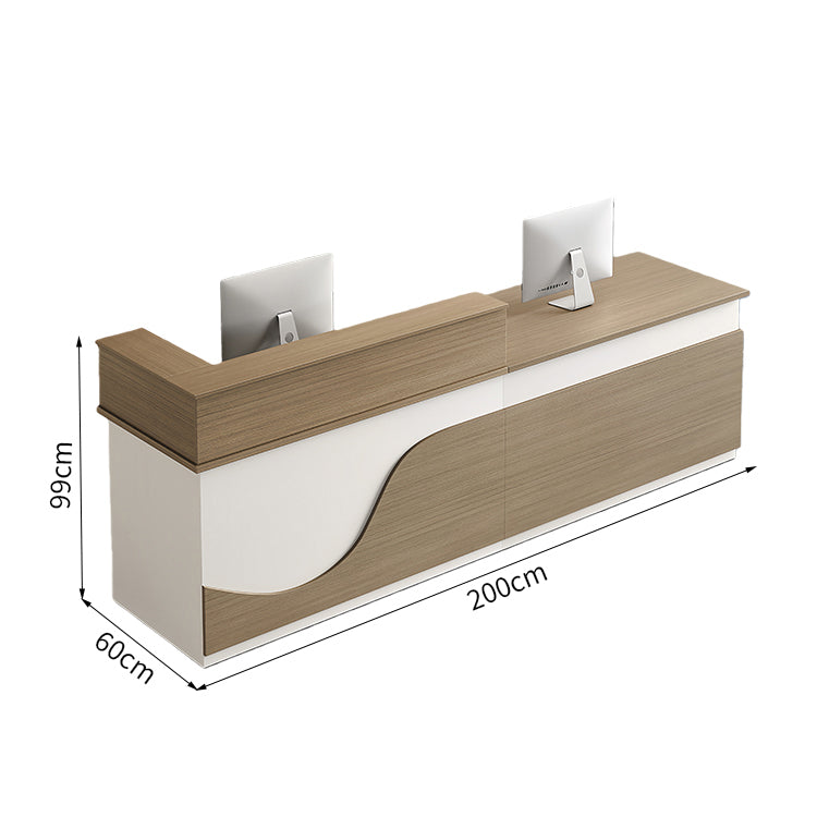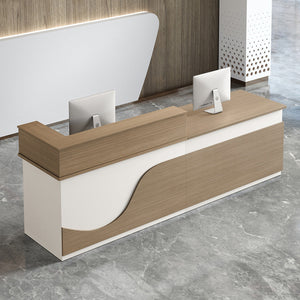 受付カウンター フロントカウンター 受付台 多機能 ロック付き 収納スペース 引き出しトレイ 便利 ホワイト ライトウォールナット JDT-2192