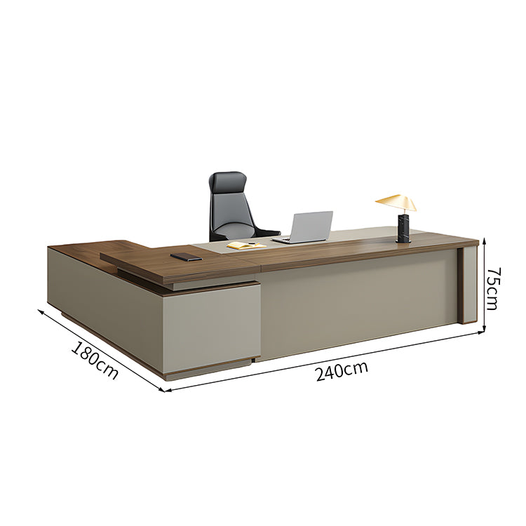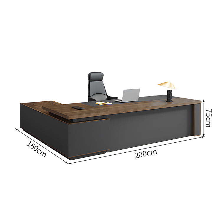 社長デスク オフィスデスク オフィス用 デスク 事務机 L型 現代 広々 ダイヤルロック サイド収納スペース ウォールナット LBZ-2143N
