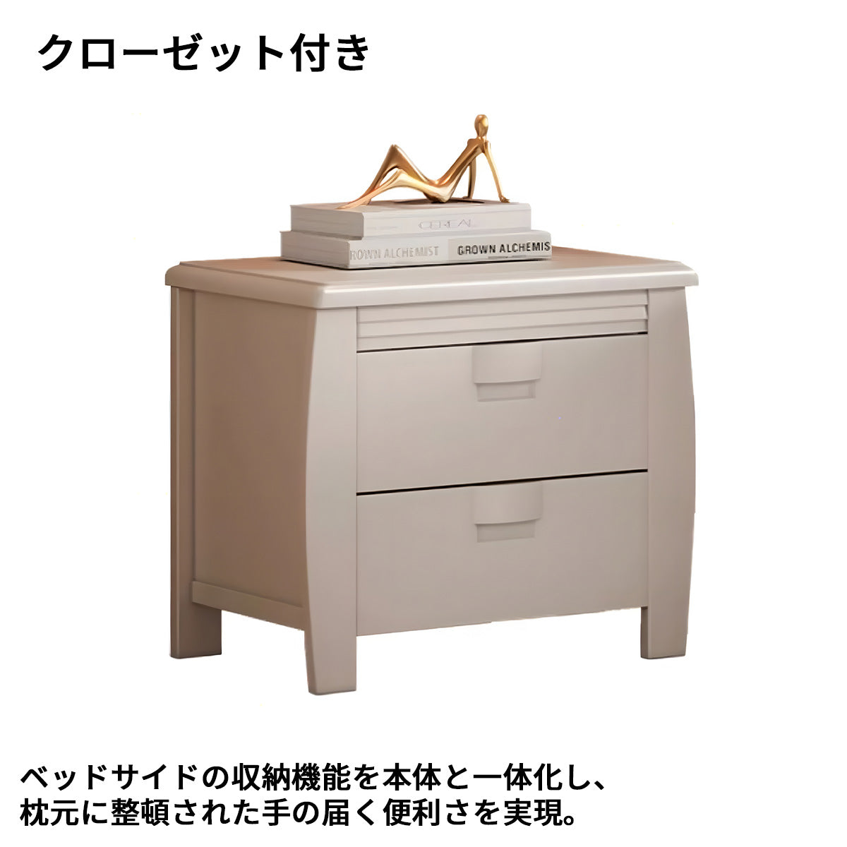 サイドキャビネットは大容量を誇り、オフィス用品などの細かいアイテムを効率的に収納できます。セキュリティ向上目的で引き出しにはシリンダー錠を搭載しており、重要書類など貴重品も安心して保管できます。